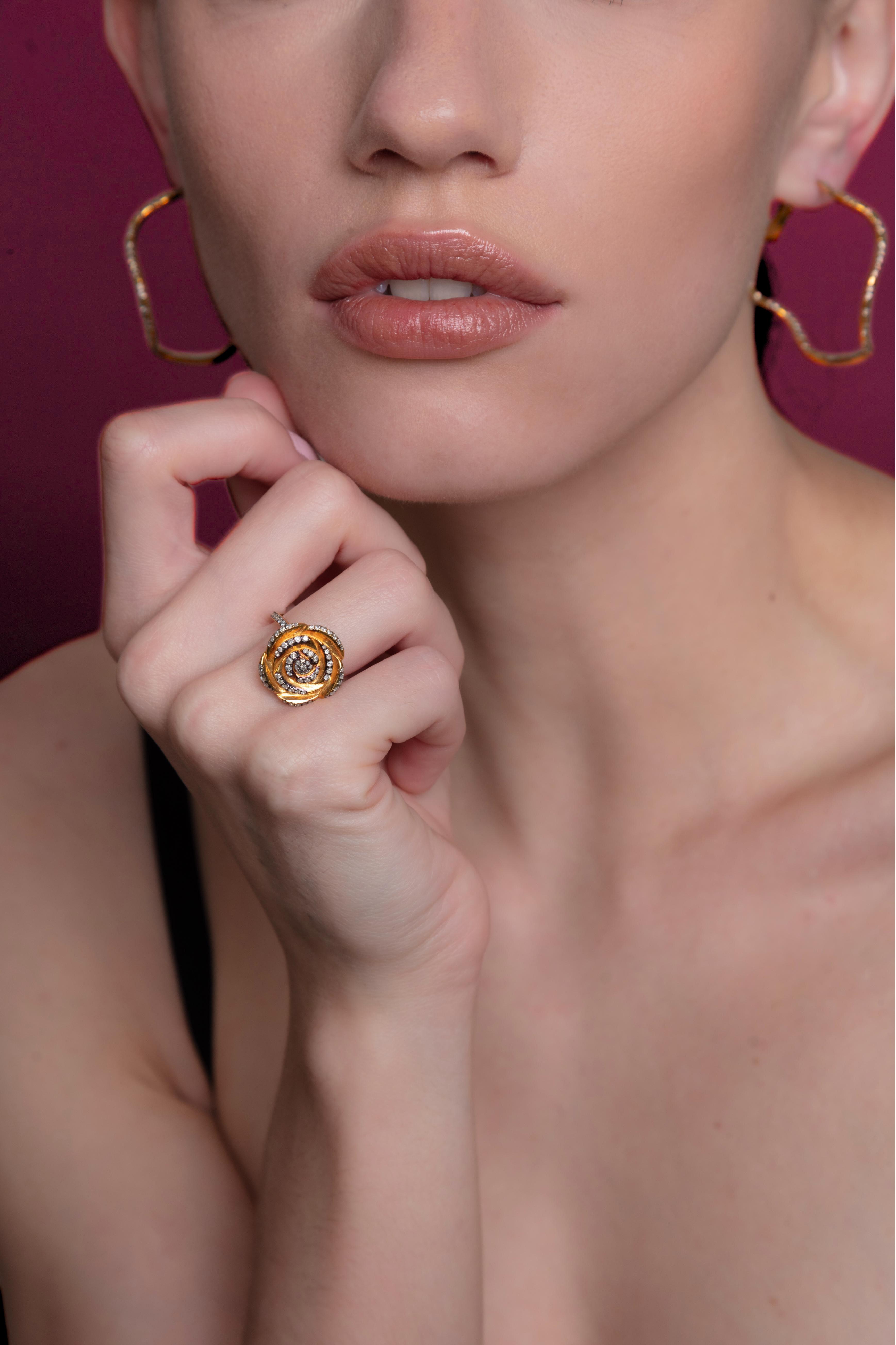 Introducing the Rosie Ring, a luxurious and fashionable addition to your jewelry collection. Made with 18k gold, this stunning "Rosie" ring is embellished with dazzling icy diamonds for a touch of elegance and sophistication.