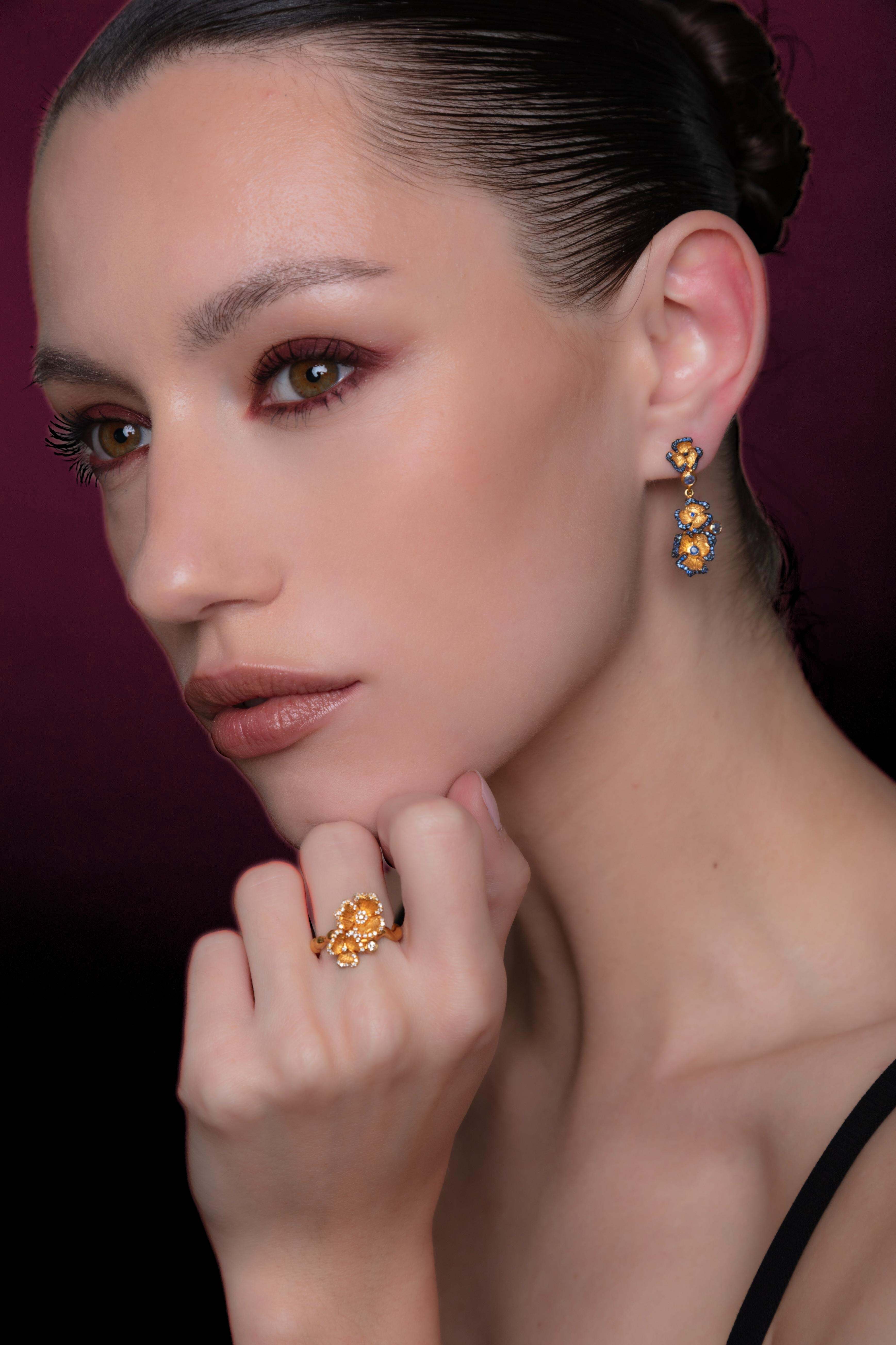 Alia I | Mini flowers crafted from 18 kt gold and embellished with sparkling sapphires and diamonds.